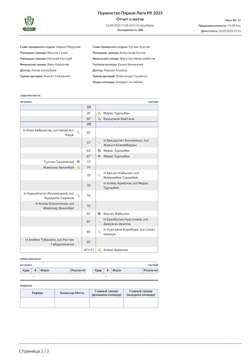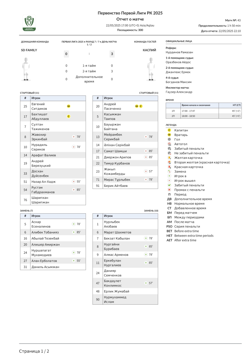 «SD Family» Астана - «Каспий» Актау - 0:3