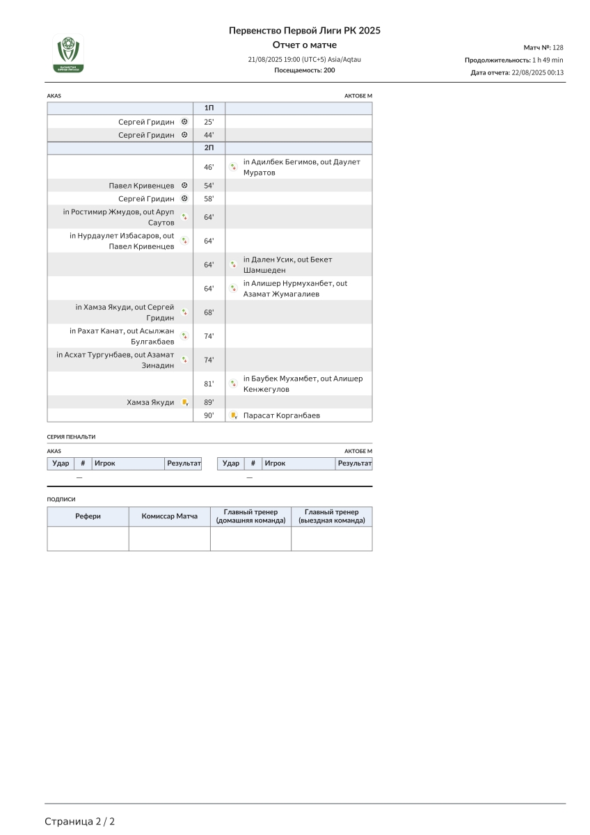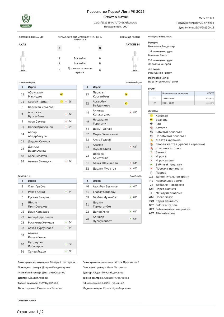 «АКАС» Алма-Ата - «Актобе U-21» Актобе - 4:0