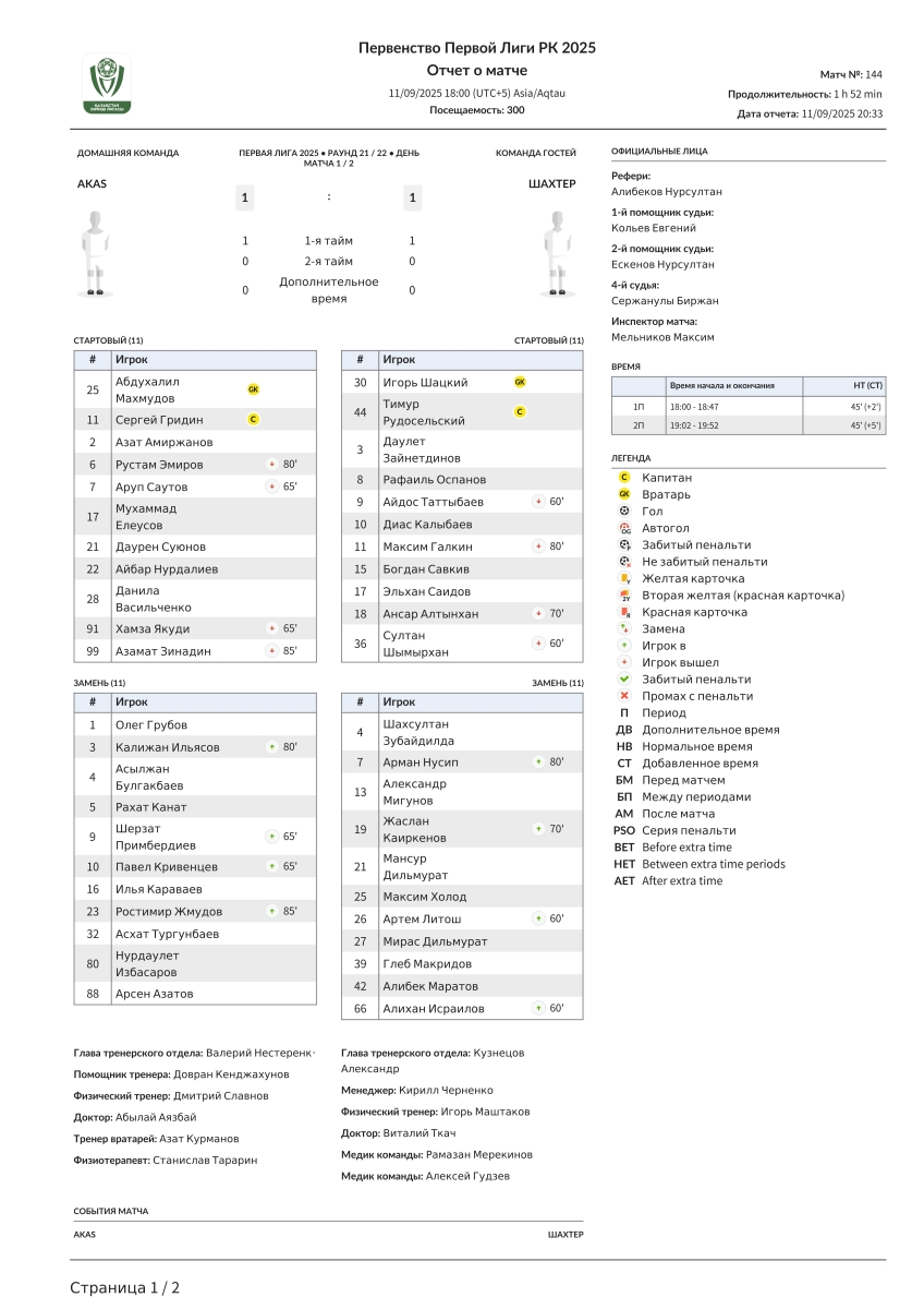 «АКАС» Алма-Ата - «Шахтёр» Караганда - 1:1