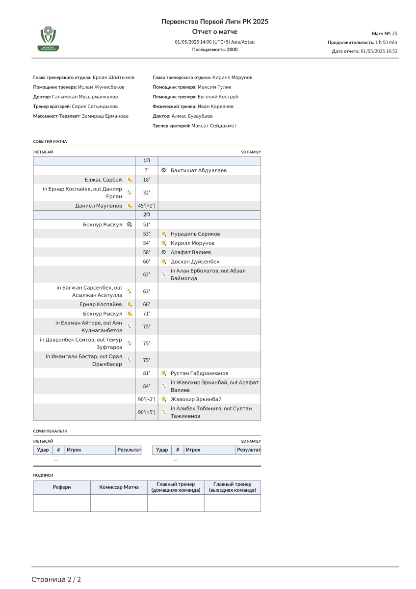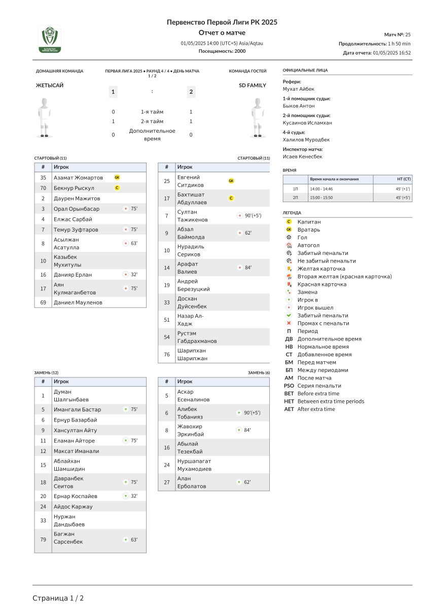 «Жетысай» Джетысай - «SD Family» Астана - 1:2