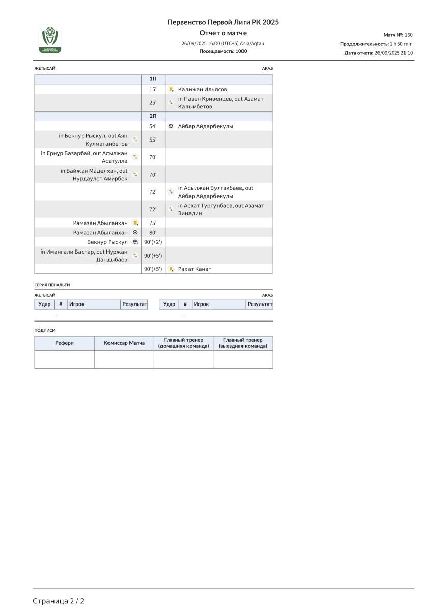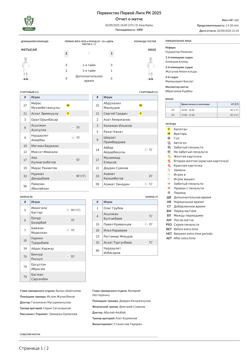 «Жетысай» Джетысай - «АКАС» Алма-Ата - 2:1