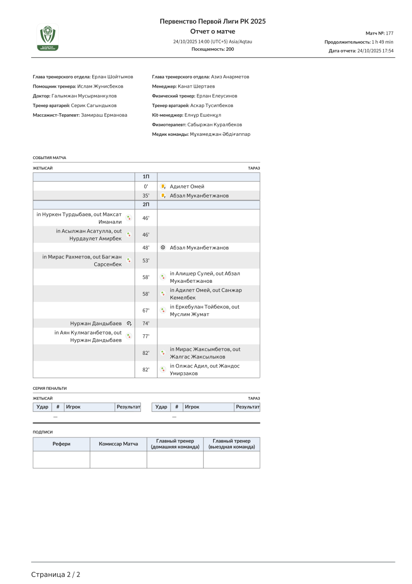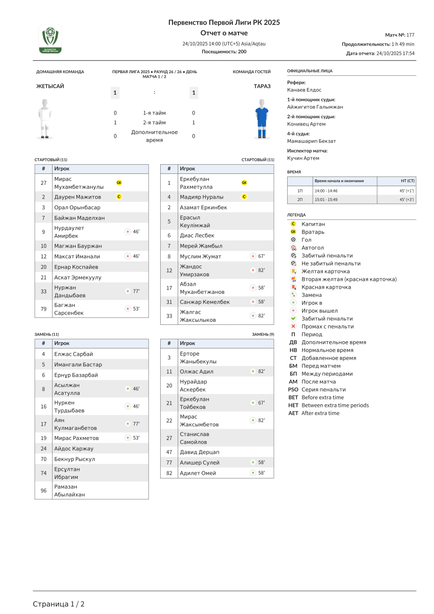 «Жетысай» Джетысай - «Тараз» Тараз - 1:1