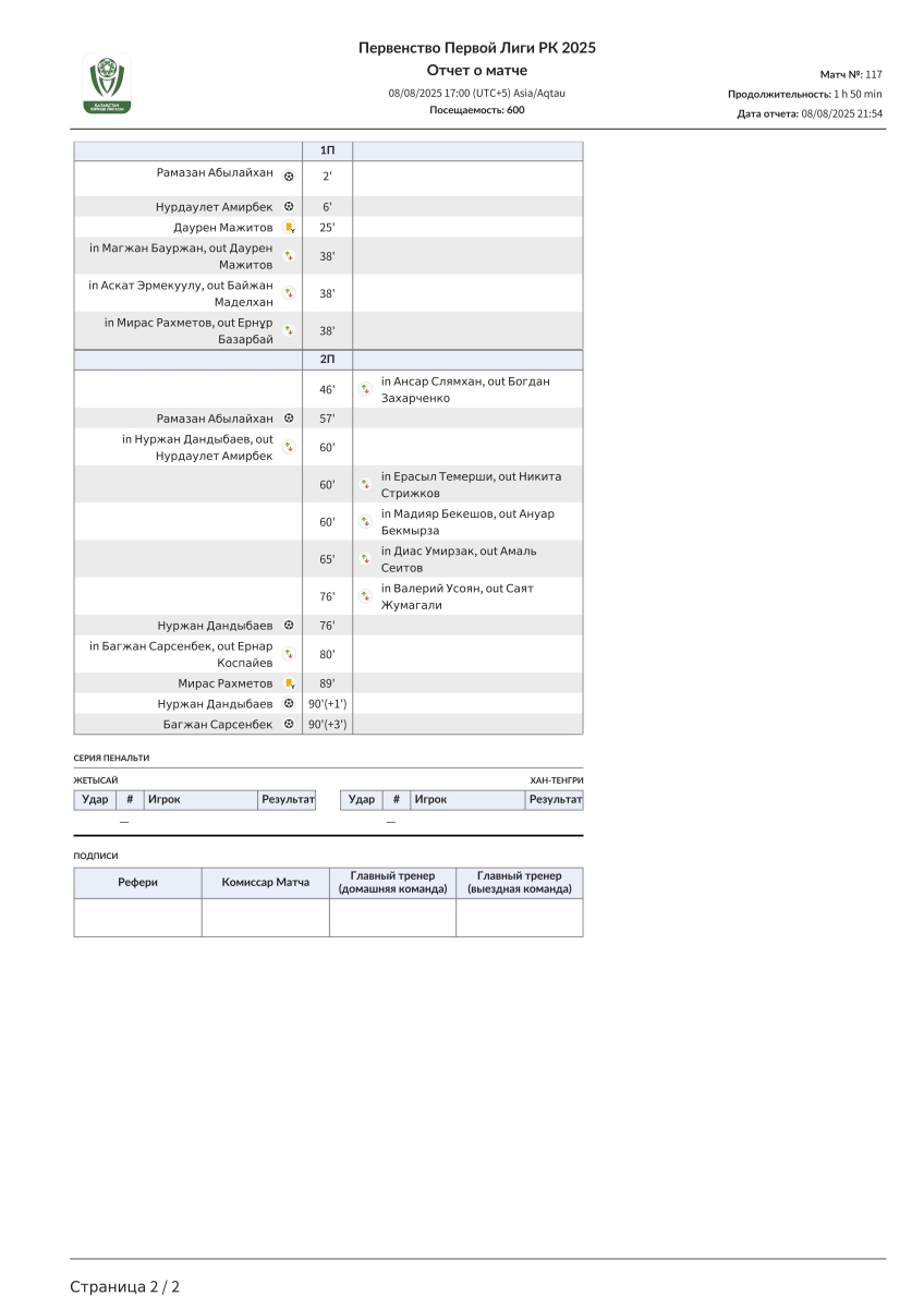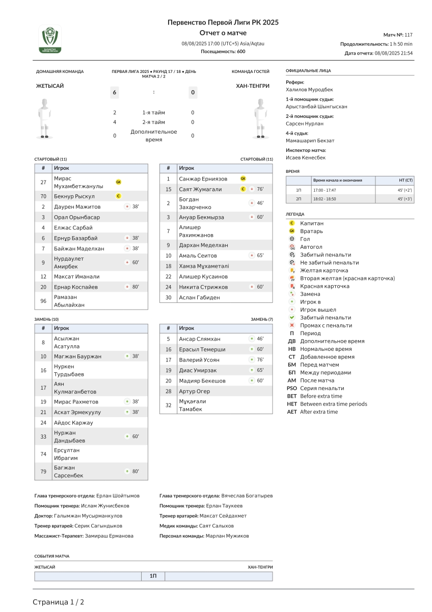 «Жетысай» Джетысай - «Хан-Тенгри» Алма-Ата - 6:0