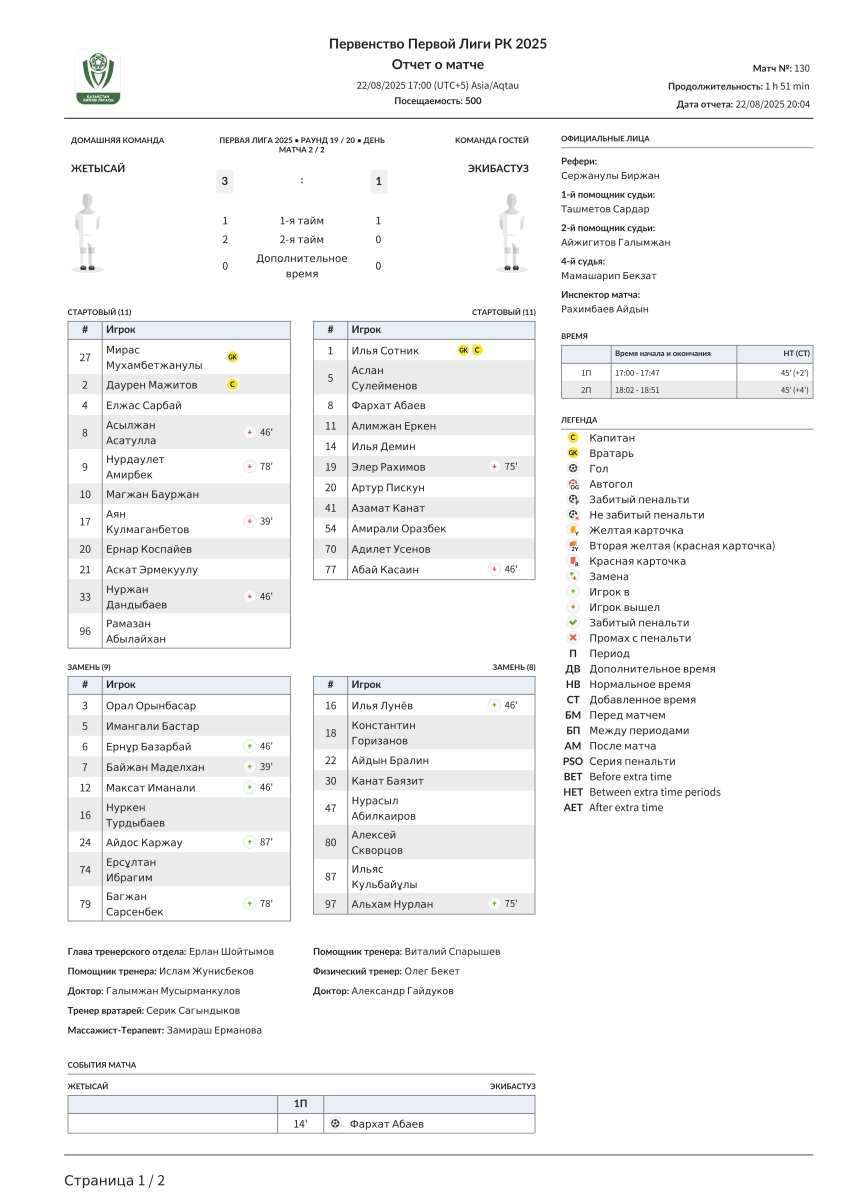 «Жетысай» Джетысай - «Экибастуз» Экибастуз - 3:1