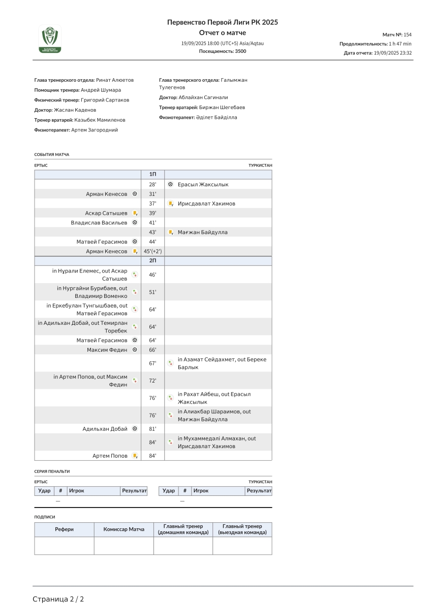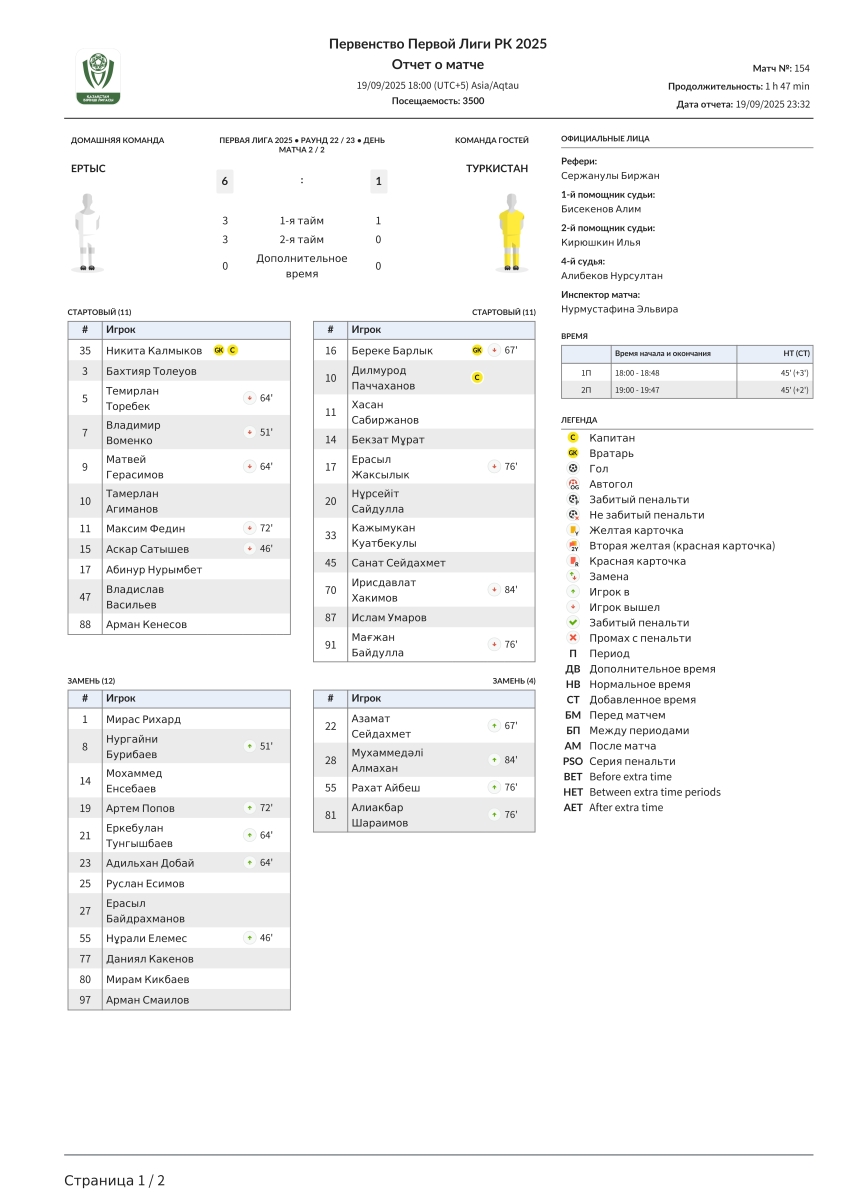 «Иртыш» Павлодар - «Туркестан» Туркестан - 6:1
