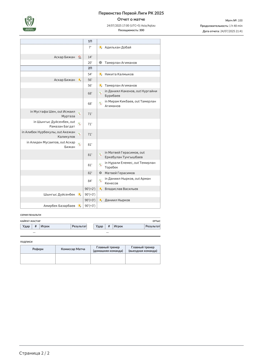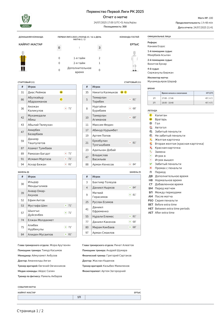 «Кайрат-Жастар» Алма-Ата - «Иртыш» Павлодар - 0:3