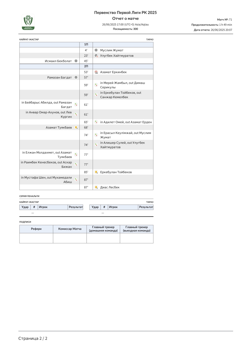 «Кайрат-Жастар» Алма-Ата - «Тараз» Тараз - 3:1