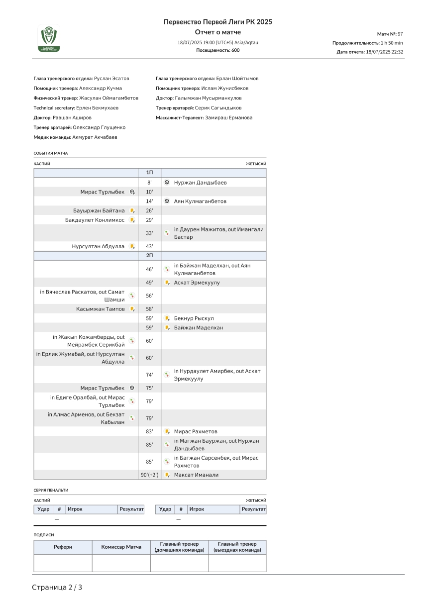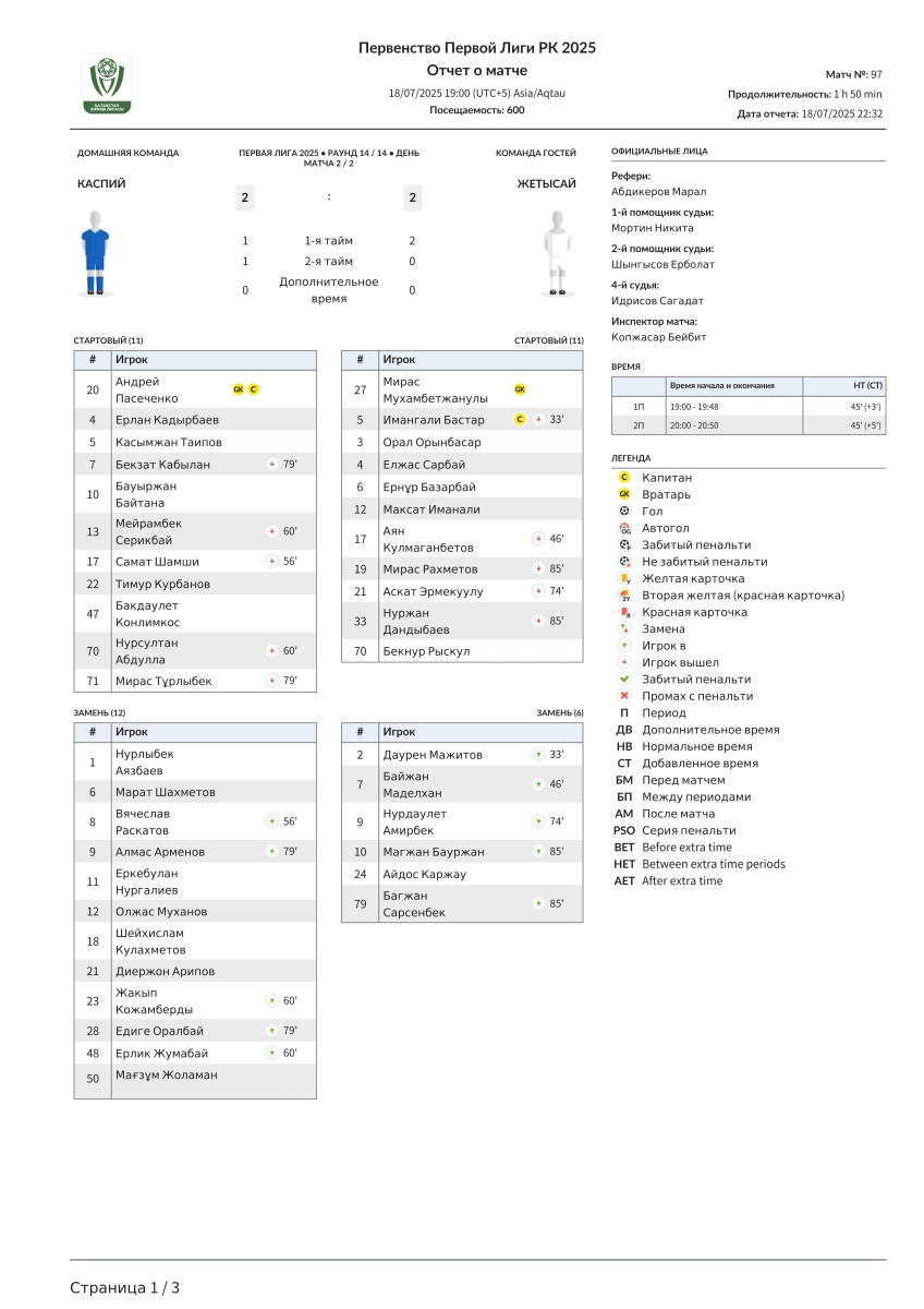 «Каспий» Актау - «Жетысай» Джетысай - 2:2