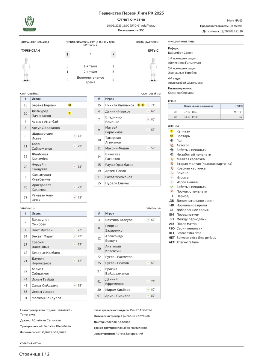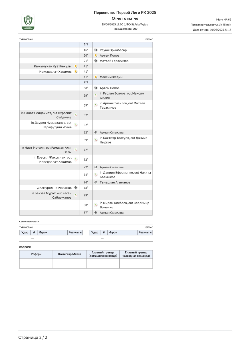 «Туркестан» Туркестан - «Иртыш» Павлодар - 1:7