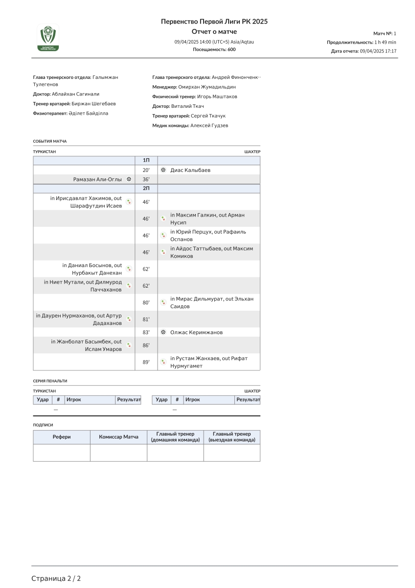 «Туркестан» Туркестан - «Шахтёр» Караганда - 1:2