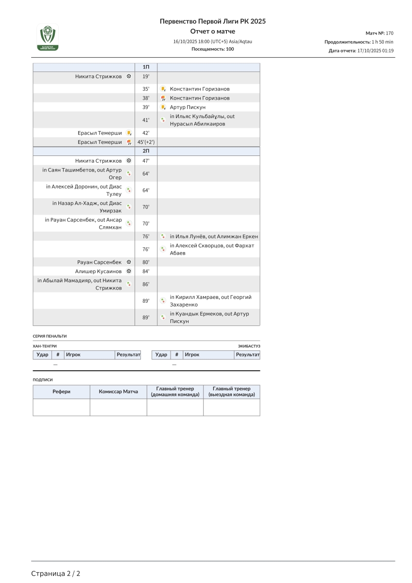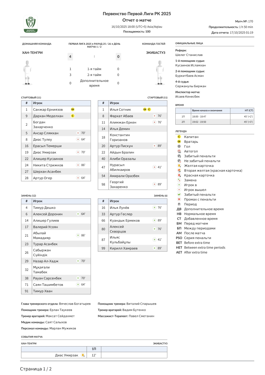 «Хан-Тенгри» Алма-Ата - «Экибастуз» Экибастуз - 4:0