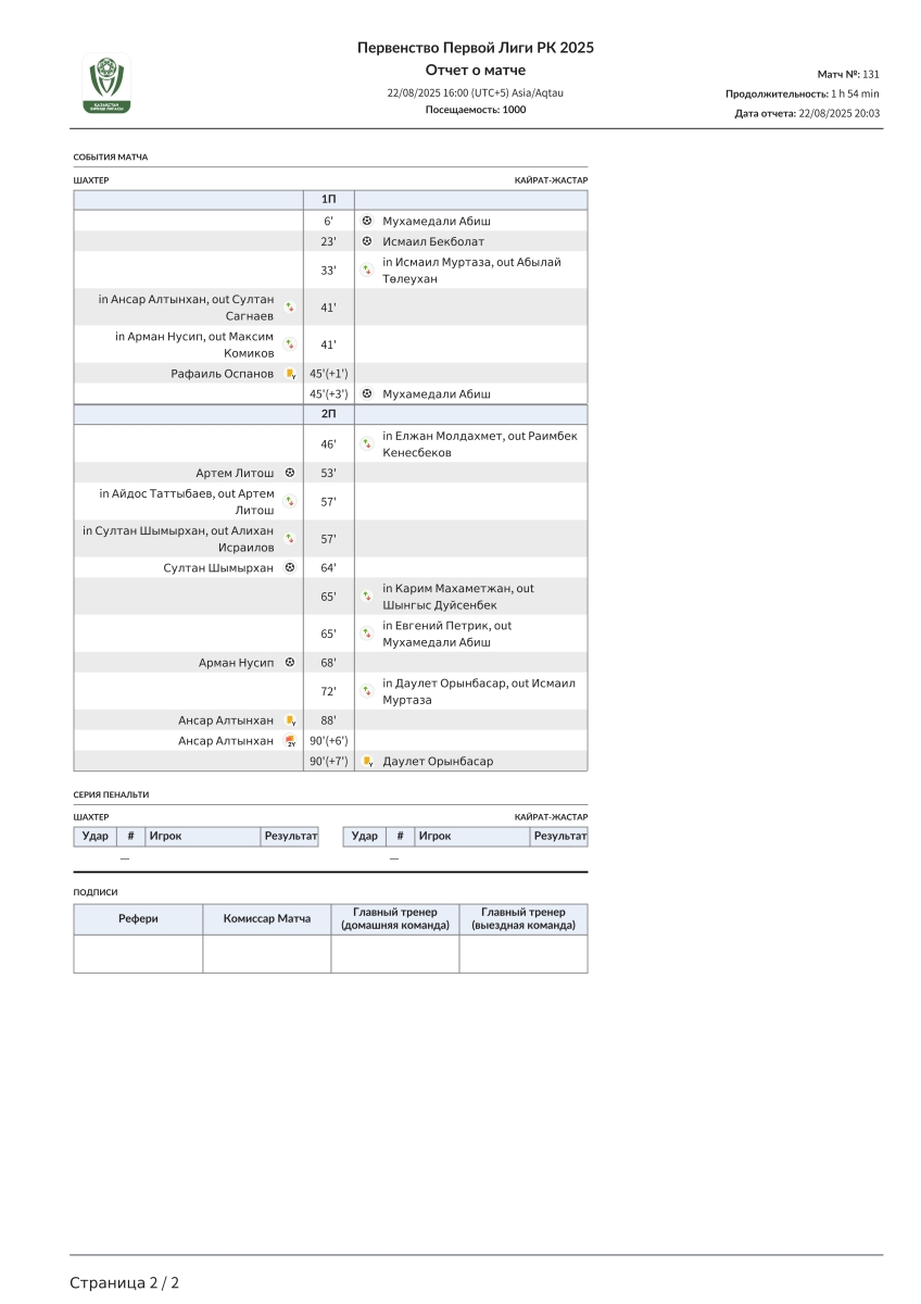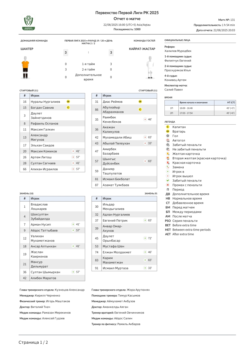 «Шахтёр» Караганда - «Кайрат-Жастар» Алма-Ата - 3:3