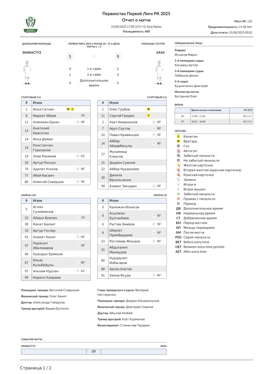 «Экибастуз» Экибастуз - «АКАС» Алма-Ата - 1:5