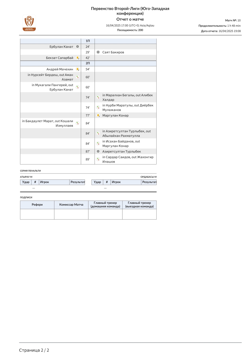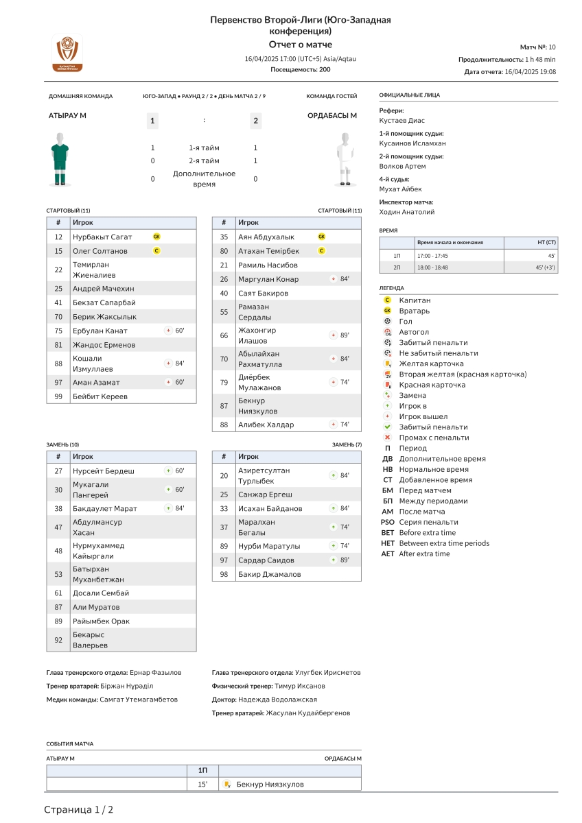«Атырау U-21» Атырау - «Ордабасы U-21» Чимкент - 1:2