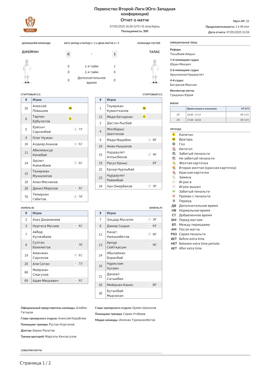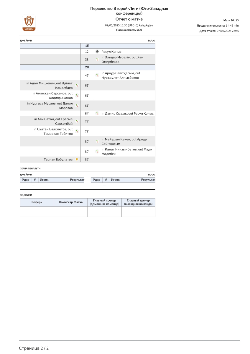 «Джейран» Алма-Ата - «Талас» Каратау - 0:1