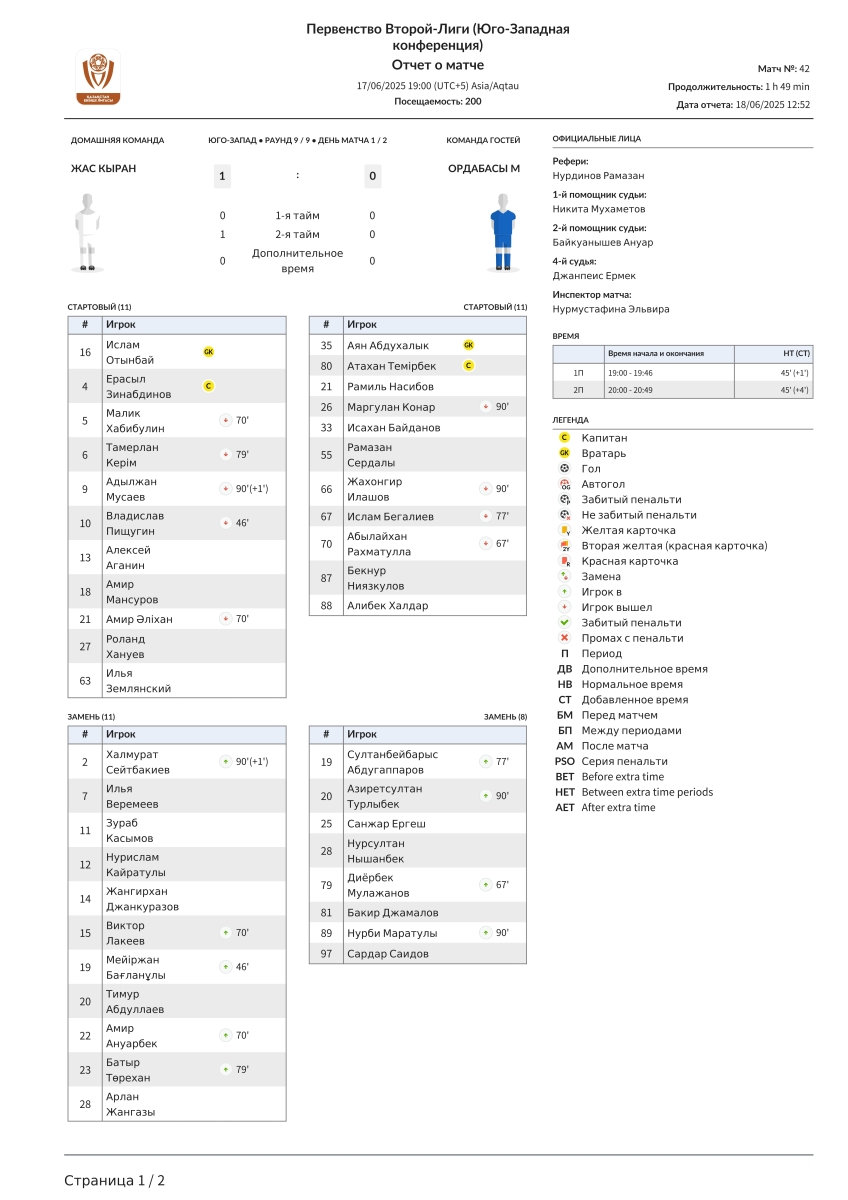 «Жас Кыран» Алма-Ата - «Ордабасы U-21» Чимкент - 1:0