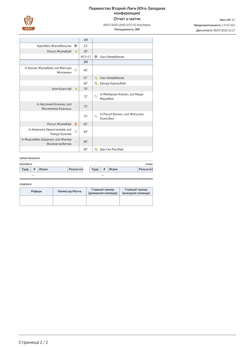 «Каспий»-М Актау - «Талас» Каратау - 1:1