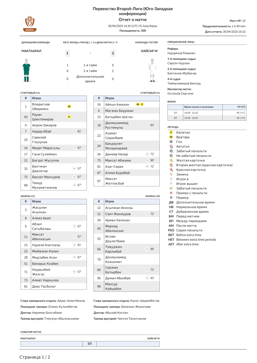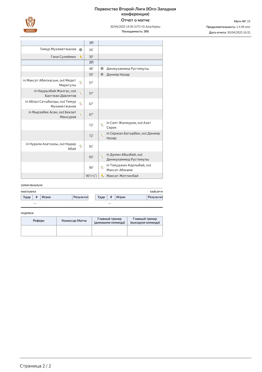 | 90+1 | Жетписбай | |||