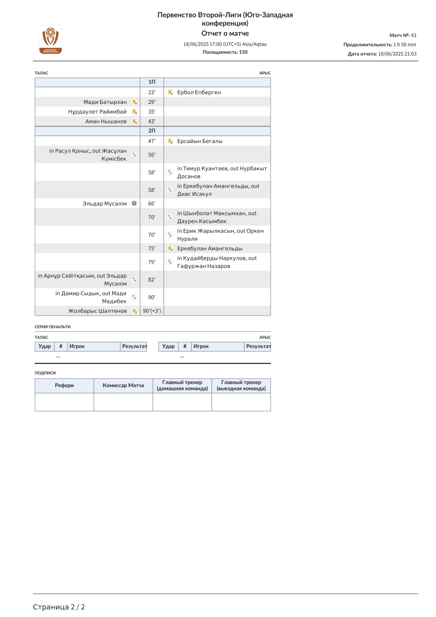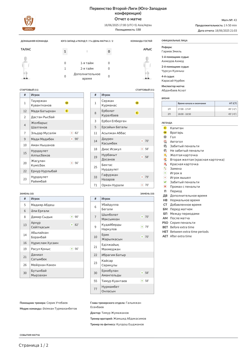 «Талас» Каратау - «Арысь» Арысь - 1:0