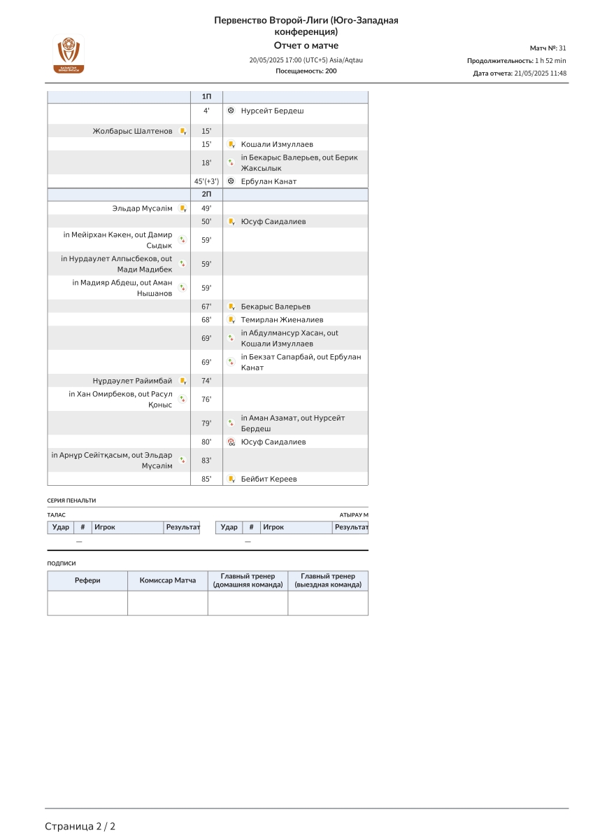 «Талас» Каратау - «Атырау U-21» Атырау - 1:2