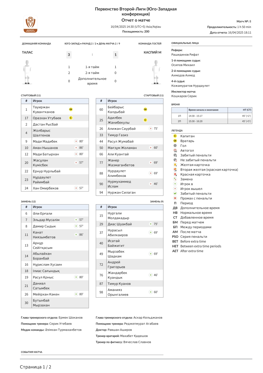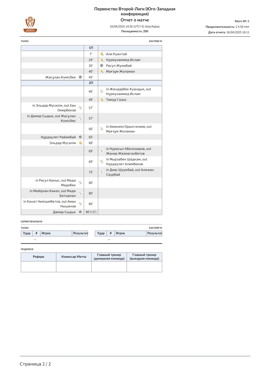 «Талас» Каратау - «Каспий»-М Актау - 3:1