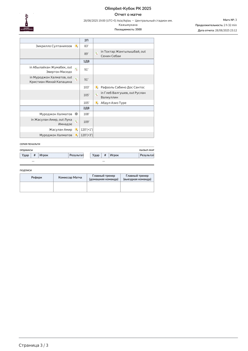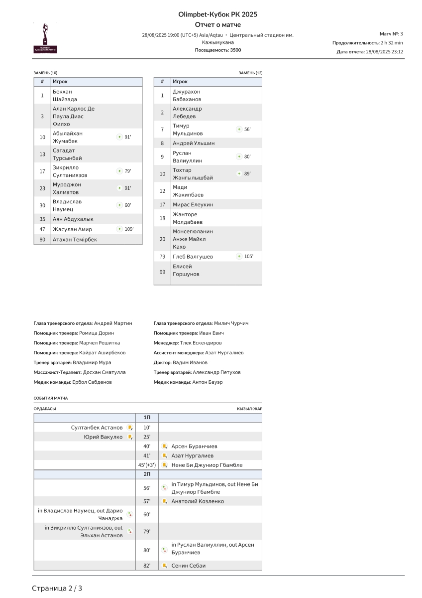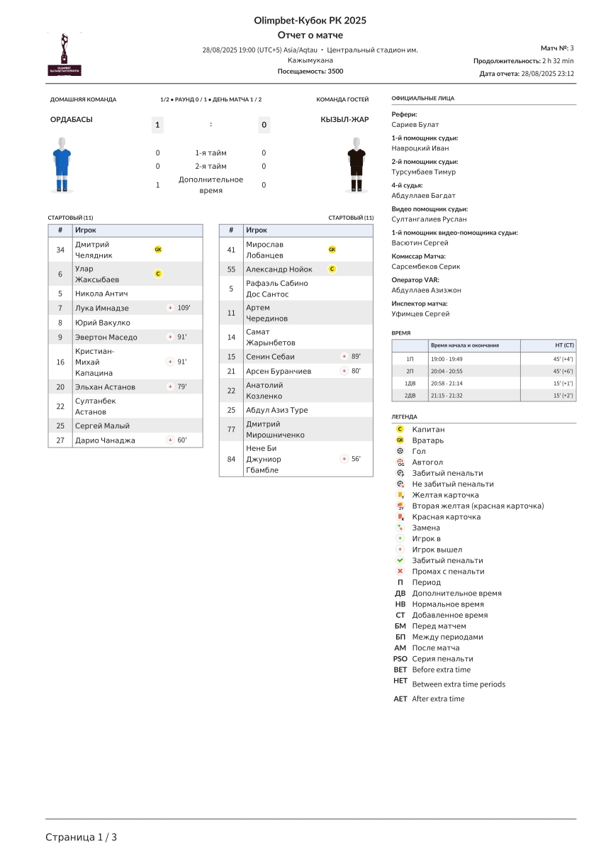 «Ордабасы» Чимкент - «Кызыл-Жар СК» Петропавловск - 1:0