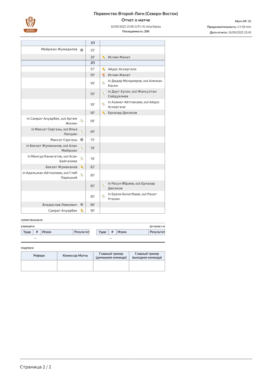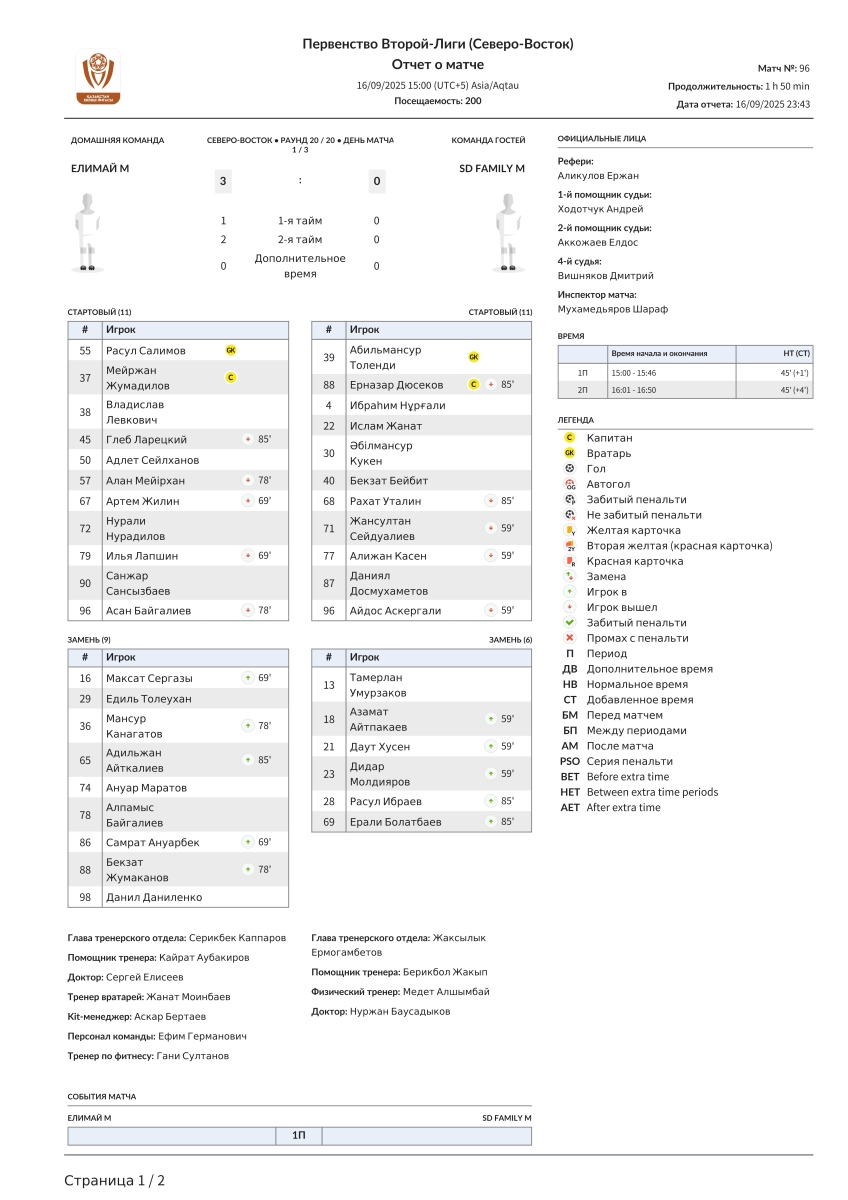 «Елимай-М» Семей - «SD Family-М» Астана - 3:0