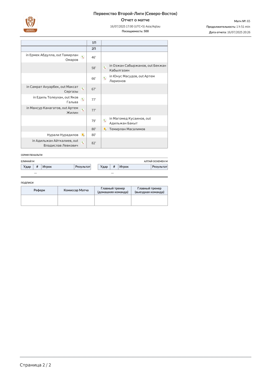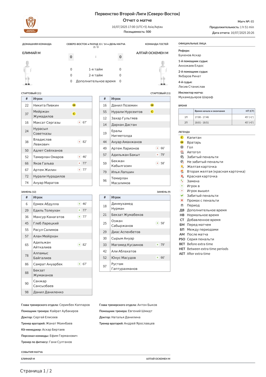 «Елимай-М» Семей - «Алтай-М» Усть-Каменогорск - 0:0