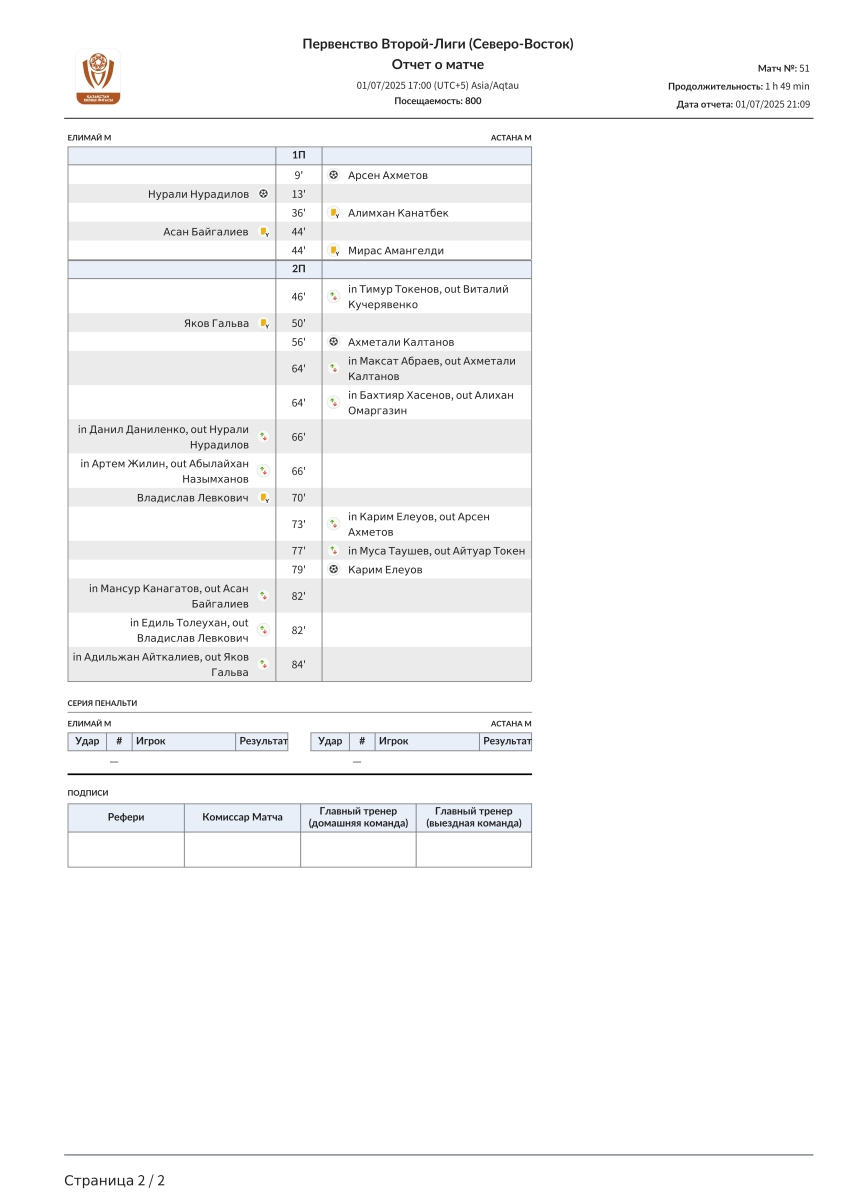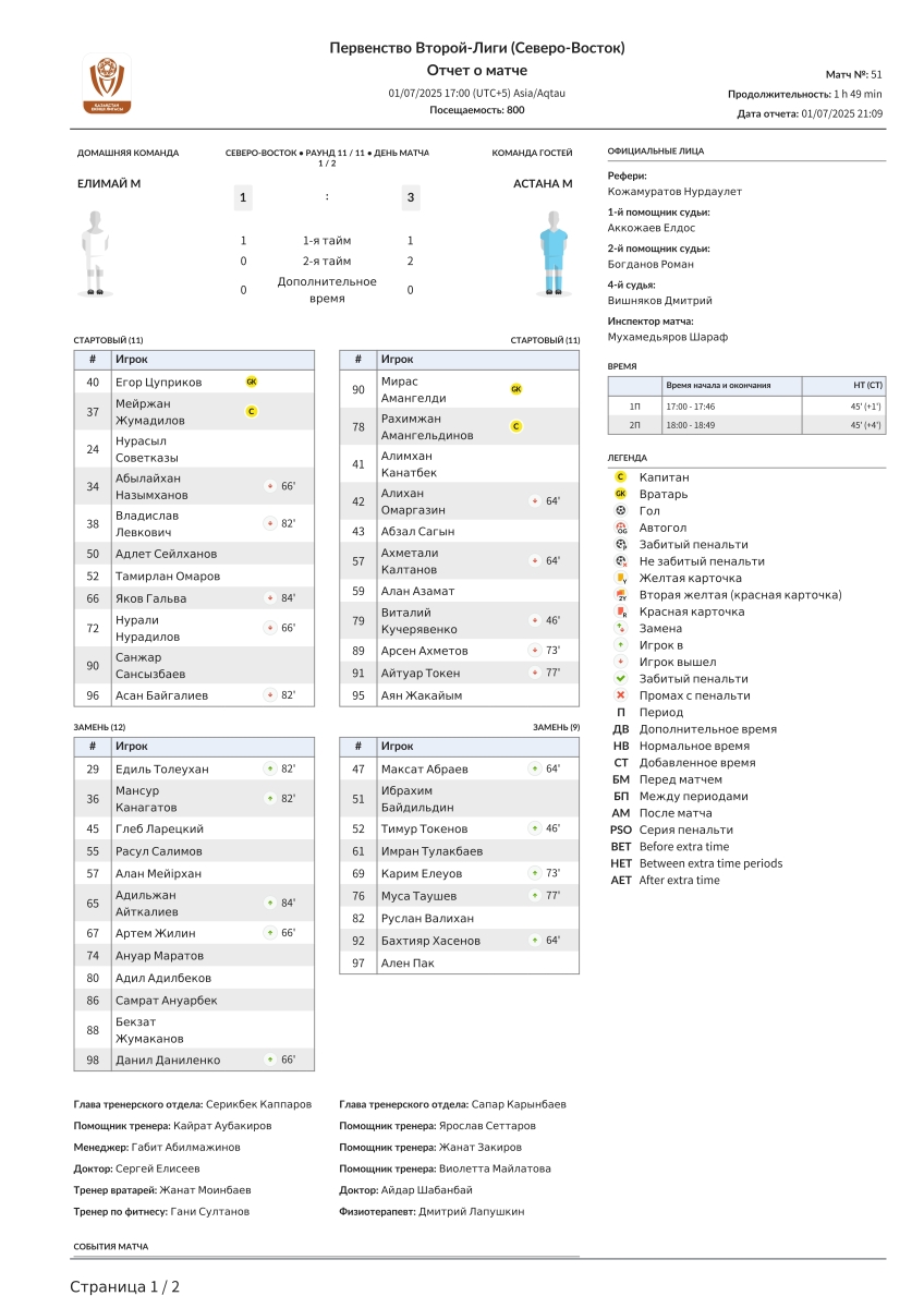 «Елимай-М» Семей - «Астана-М» Астана - 1:3