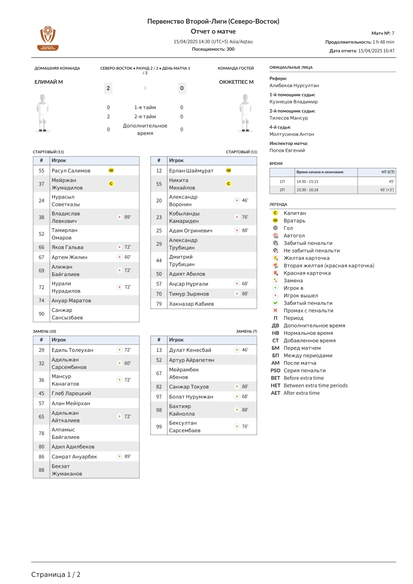 «Елимай-М» Семей - «Окжетпес U-21» Кокчетав - 2:0