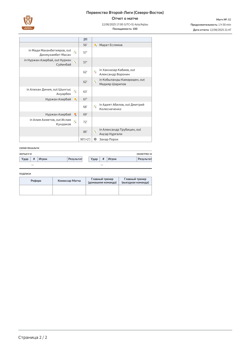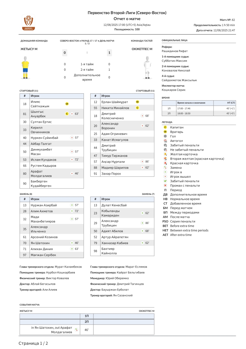 «Жетысу U-21» Талды-Курган - «Окжетпес U-21» Кокчетав - 0:1