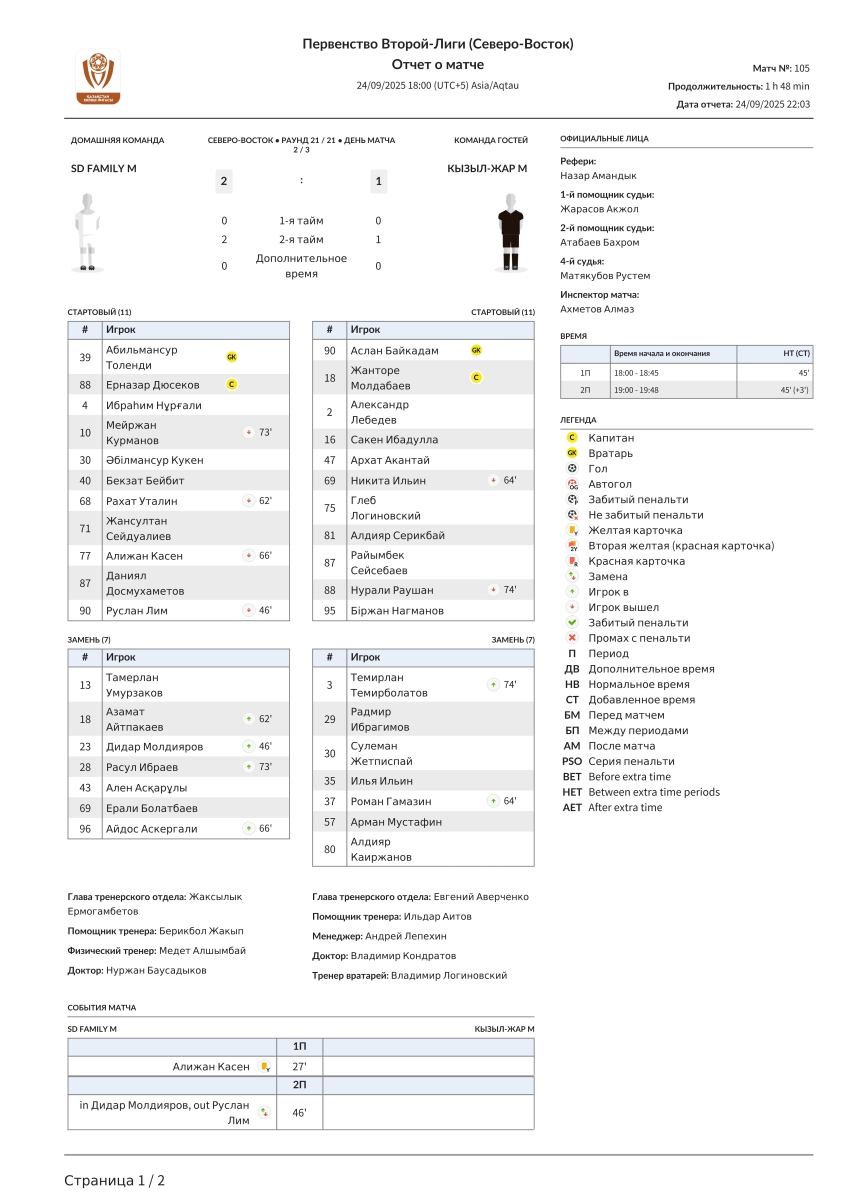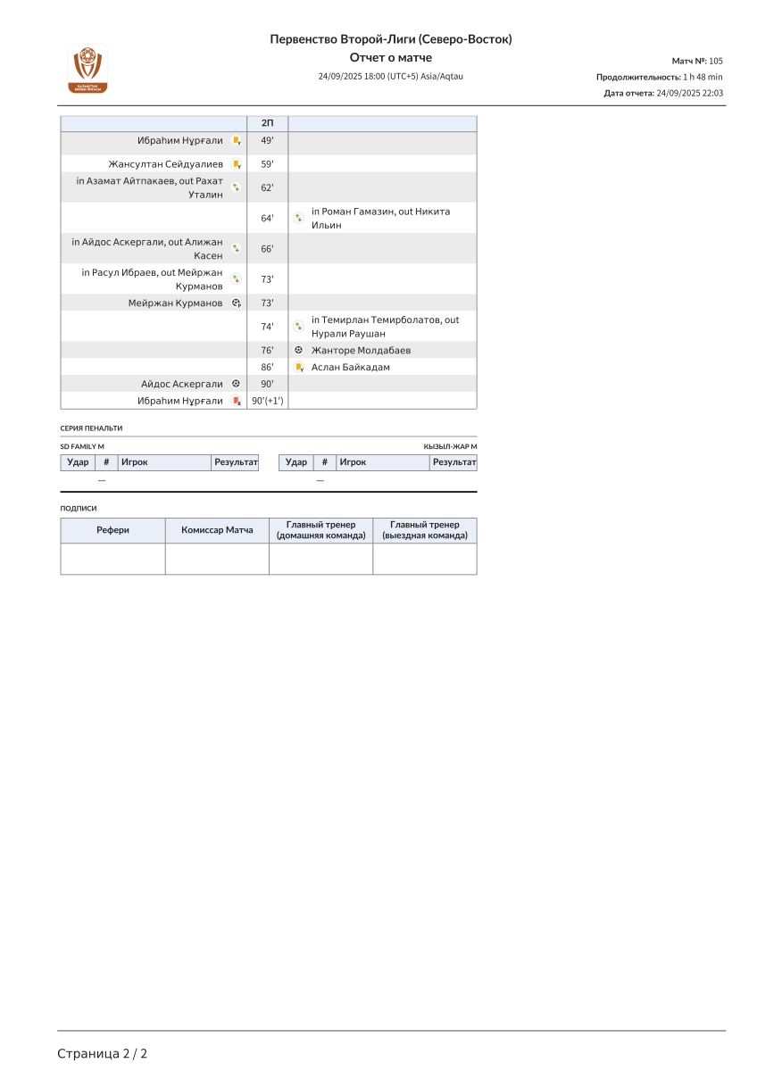 «SD Family-М» Астана - «Кызыл-Жар СК-М» Петропавловск - 2:1