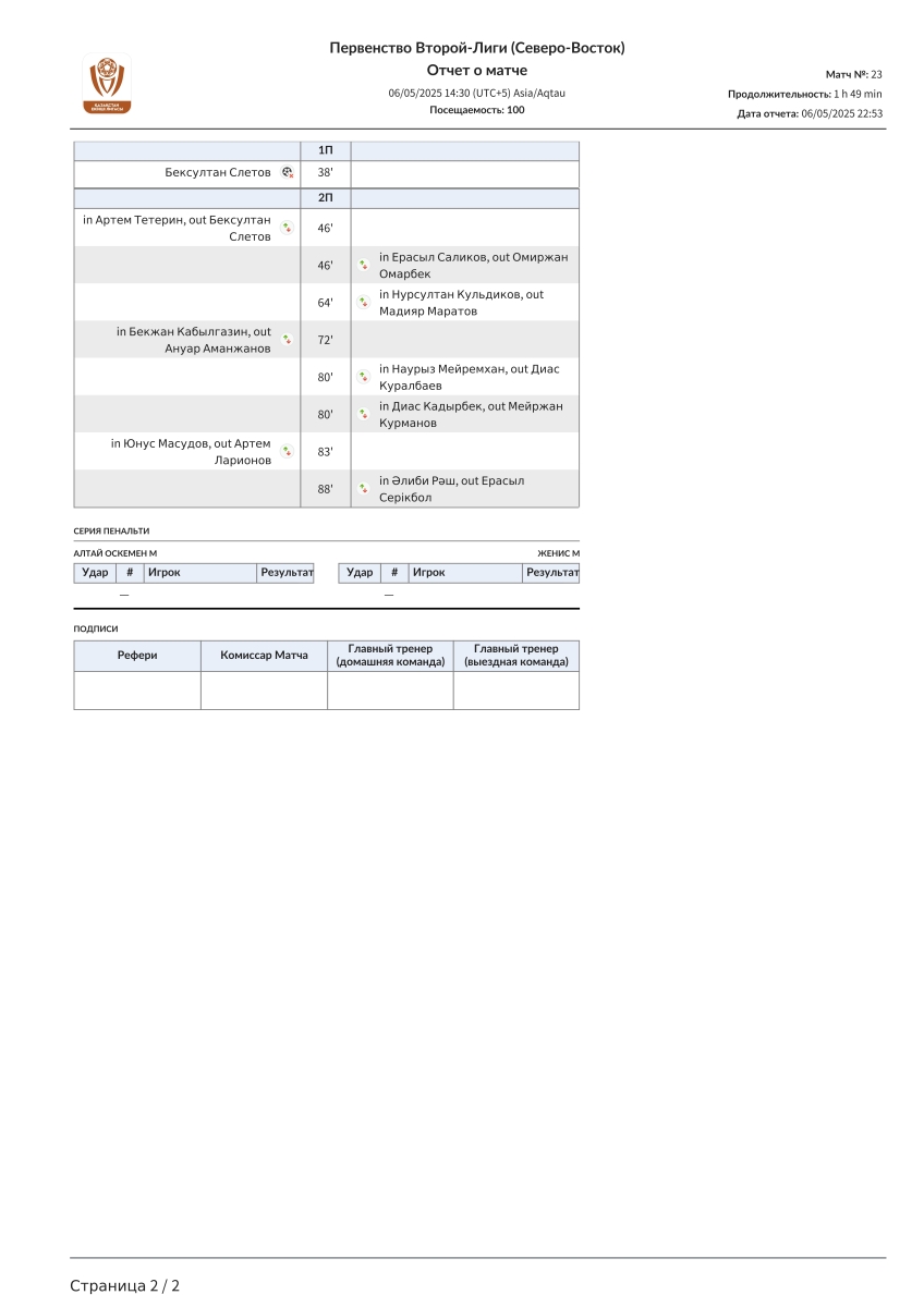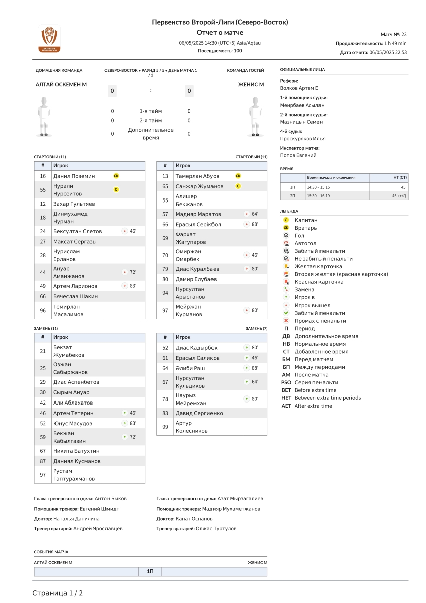 «Алтай-М» Усть-Каменогорск - «Женис Жас» Астана - 0:0