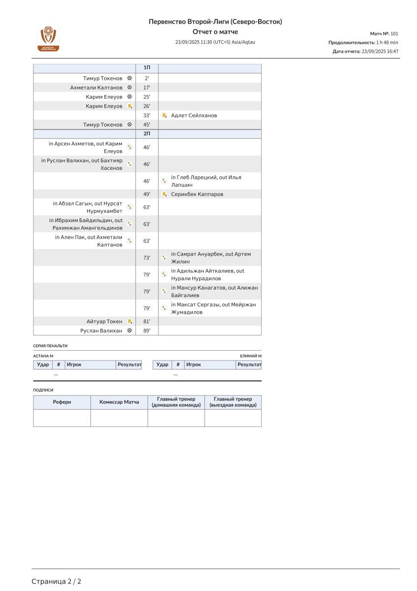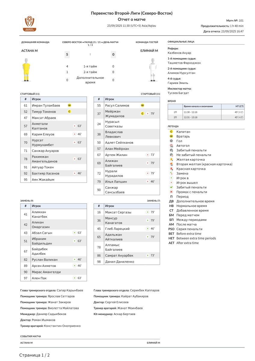 «Астана-М» Астана - «Елимай-М» Семей - 5:0