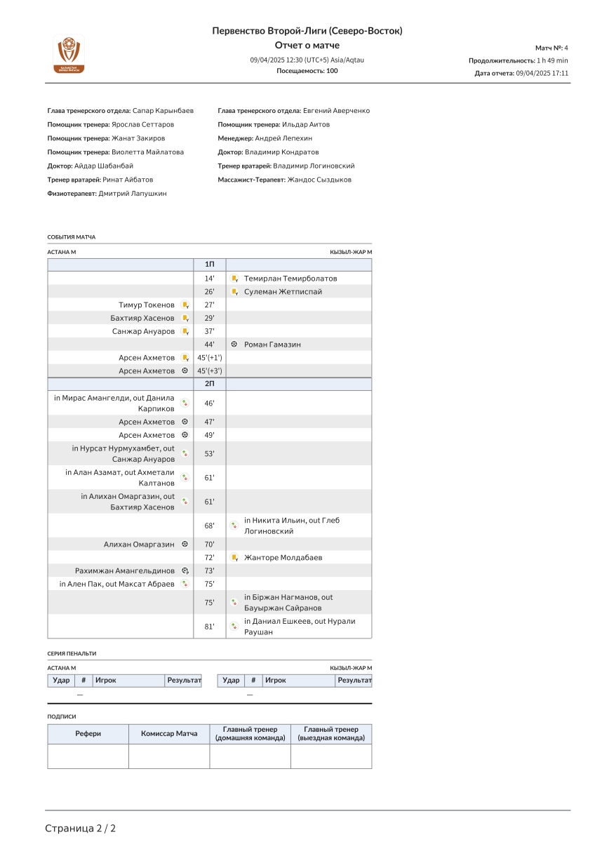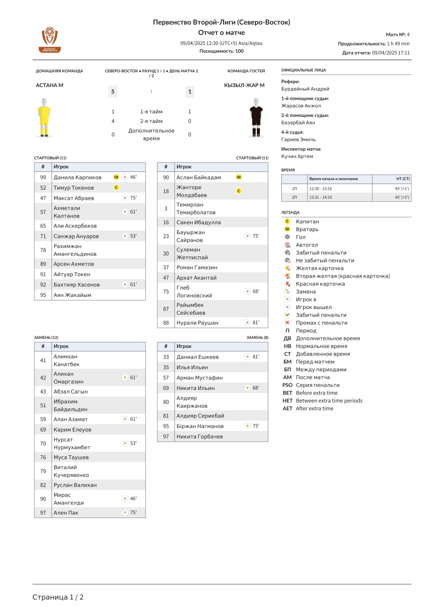 «Астана-М» Астана - «Кызыл-Жар СК-М» Петропавловск - 5:1