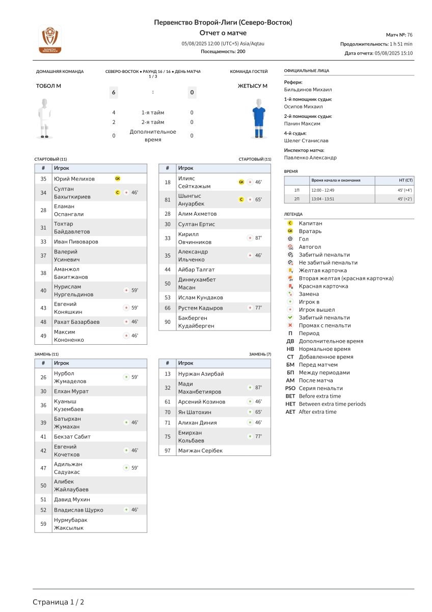 | 45+6 | Базарбаев |