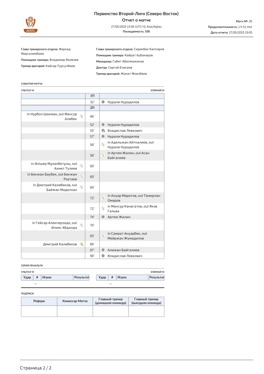 «Улытау-М» Джезказган - «Елимай-М» Семей - 0:7
