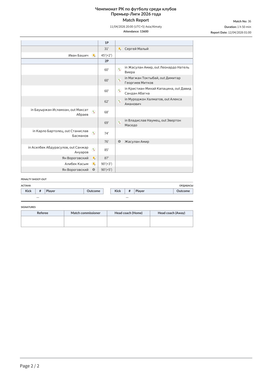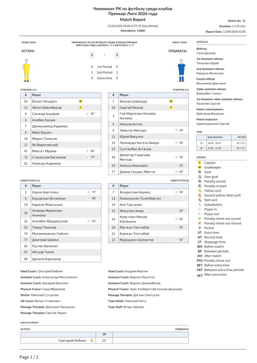 «Астана» Астана - «Ордабасы» Чимкент - 1:1