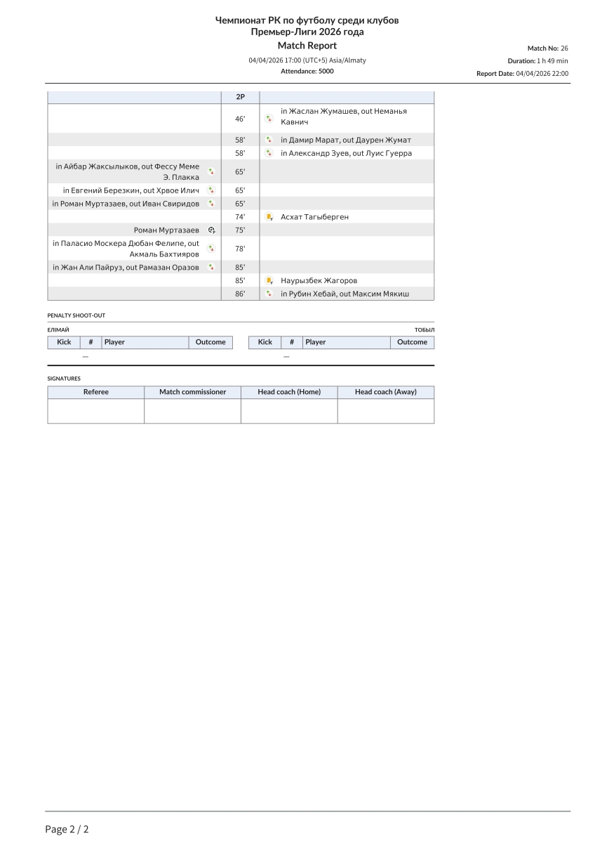 Чемпионат Казахстана 2026. Премьер-Лига