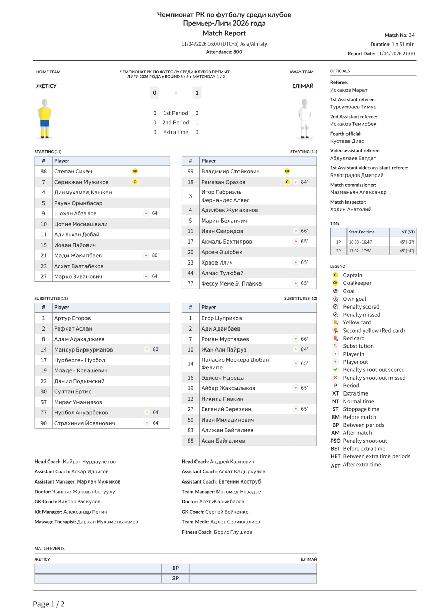 «Жетысу» Талды-Курган - «Елимай» Семей - 0:1