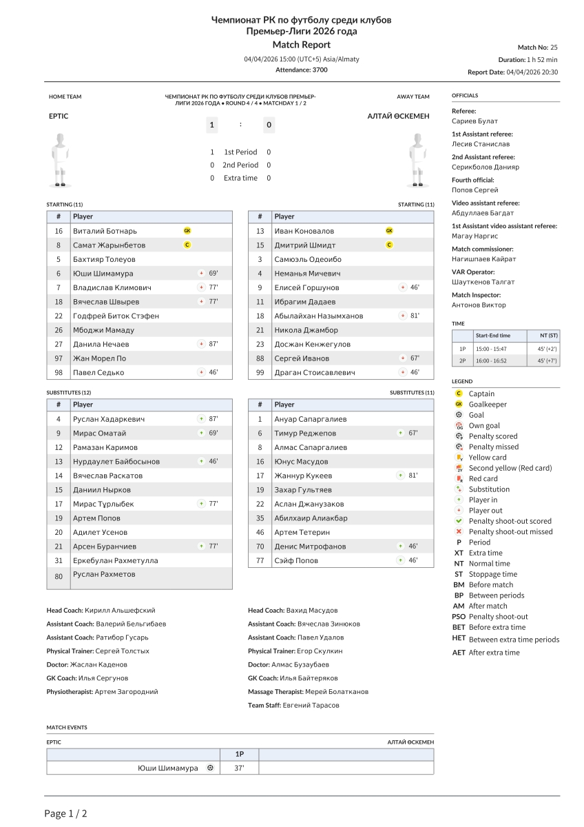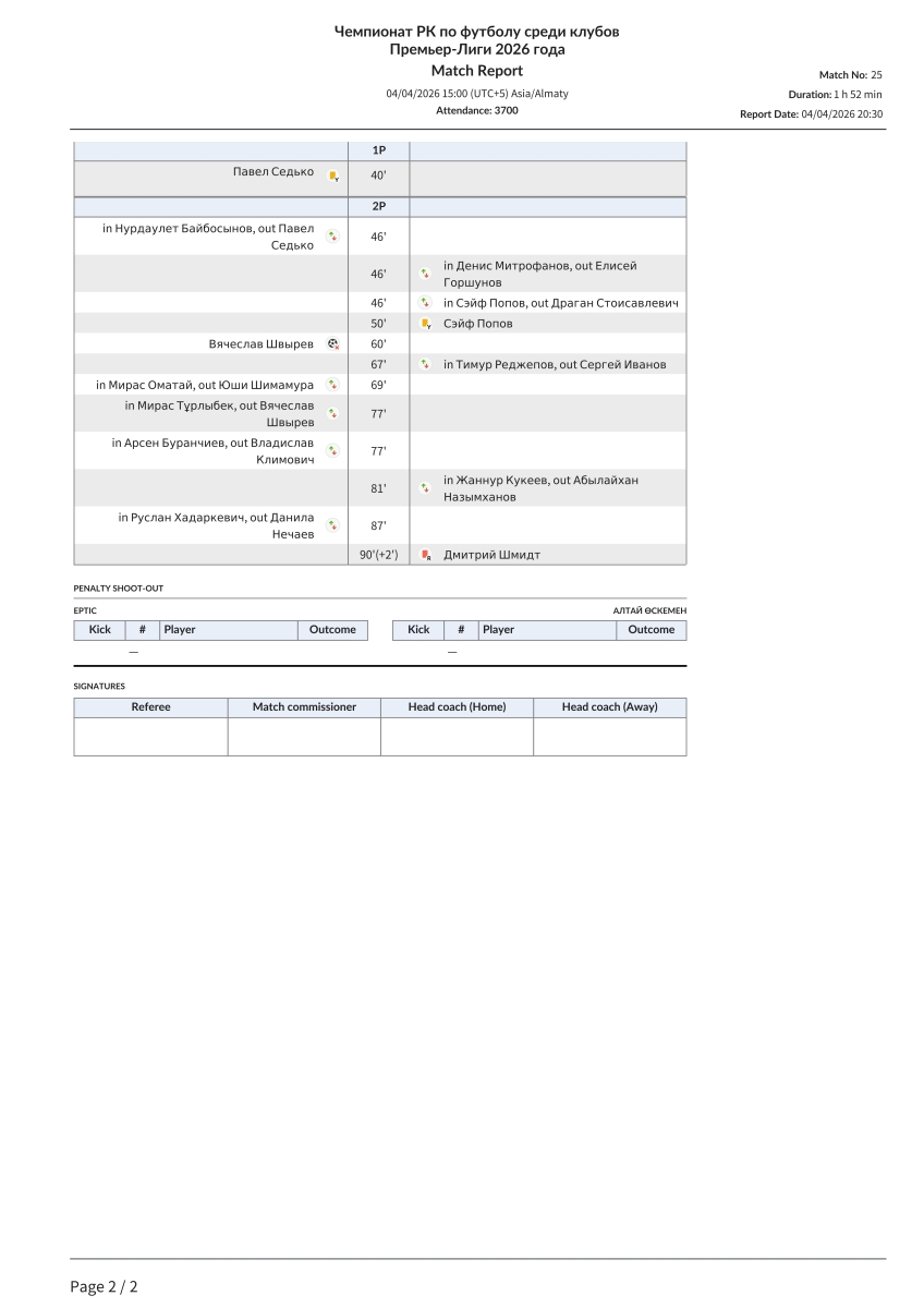 «Иртыш» Павлодар - «Алтай» Усть-Каменогорск - 1:0