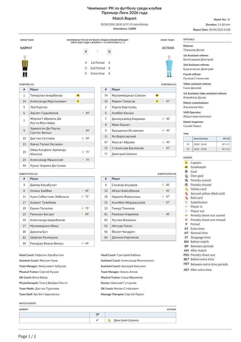 «Кайрат» Алма-Ата - «Астана» Астана - 4:0
