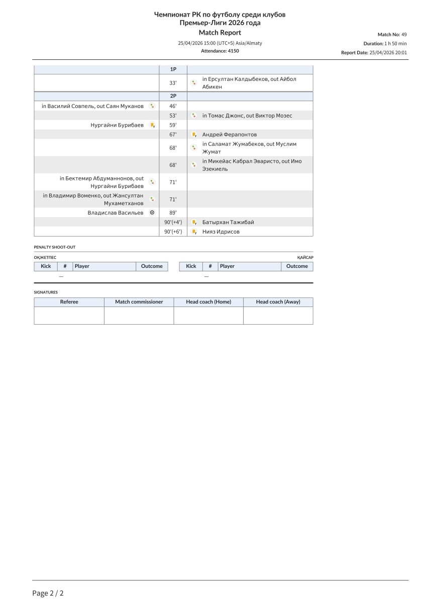 Чемпионат Казахстана 2026. Премьер-Лига