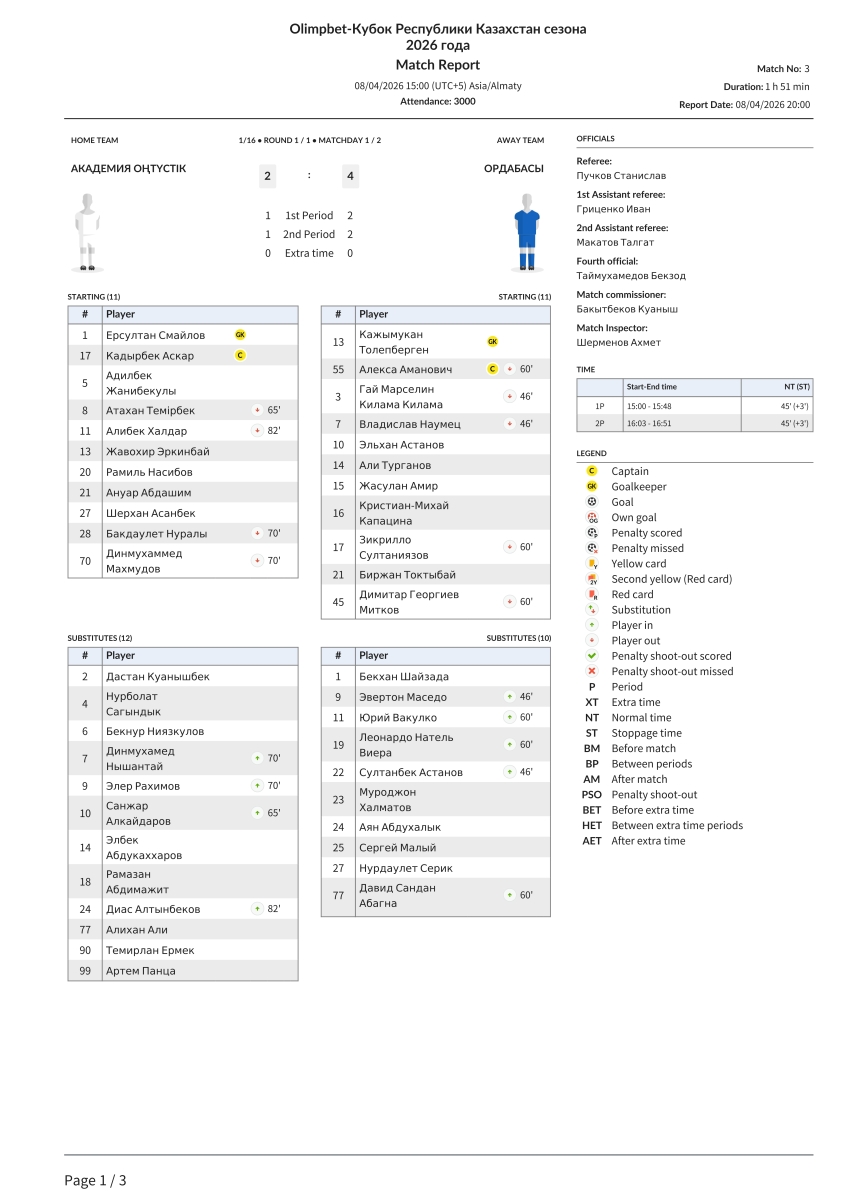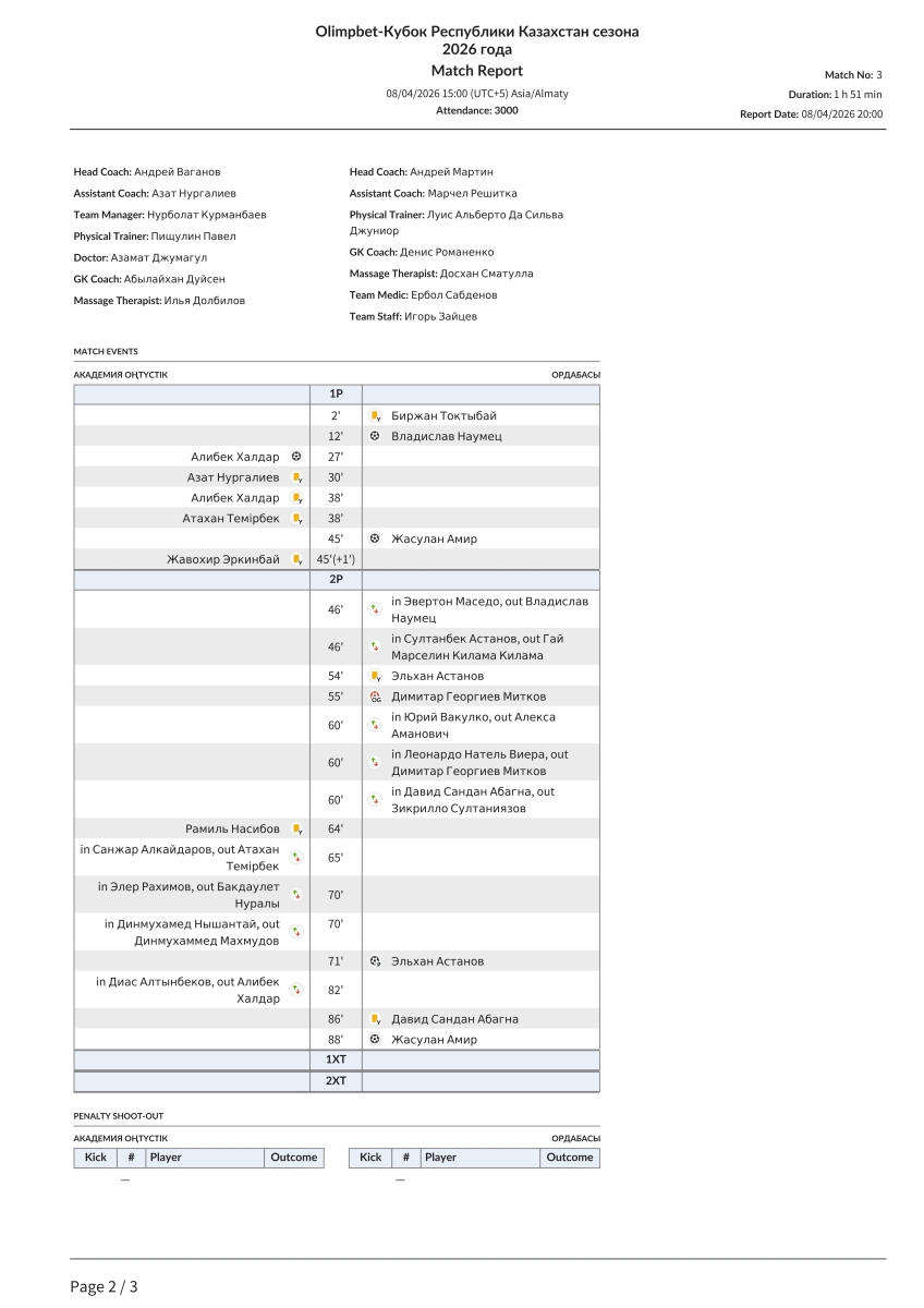 «Академия Онтүстик» Чимкент - «Ордабасы» Чимкент - 2:4