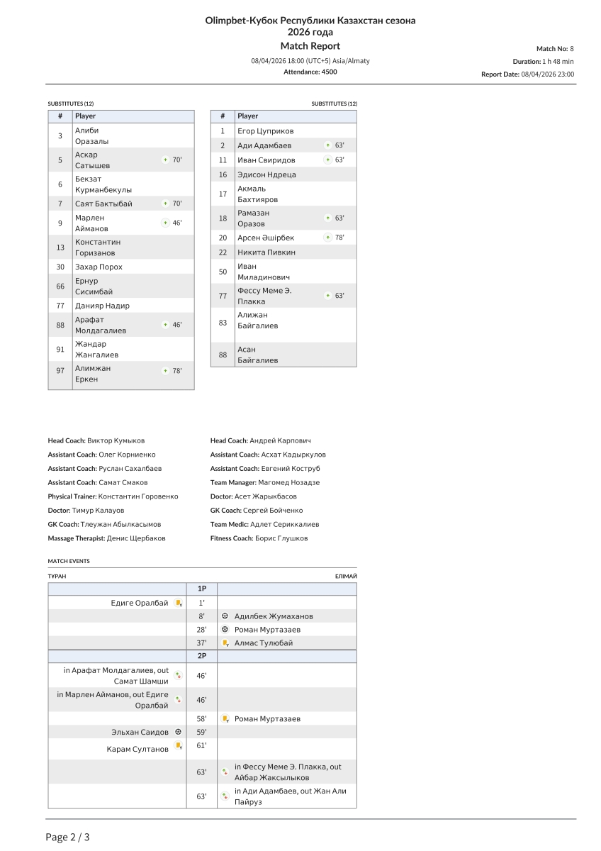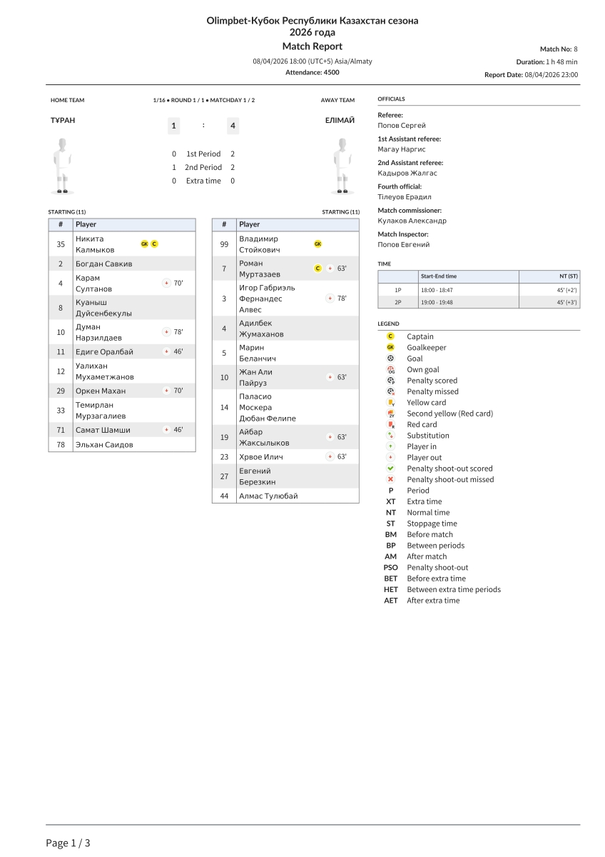 «Туран» Туркестан - «Елимай» Семей - 1:4