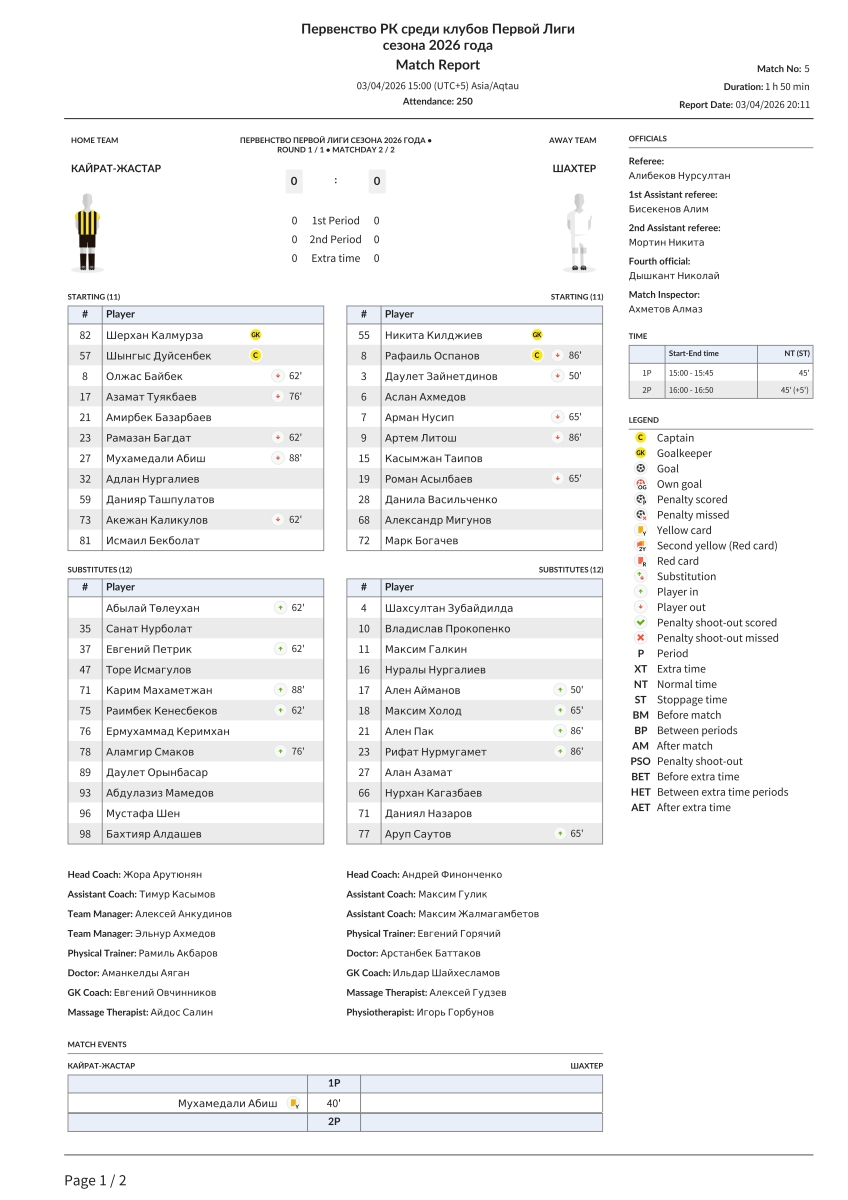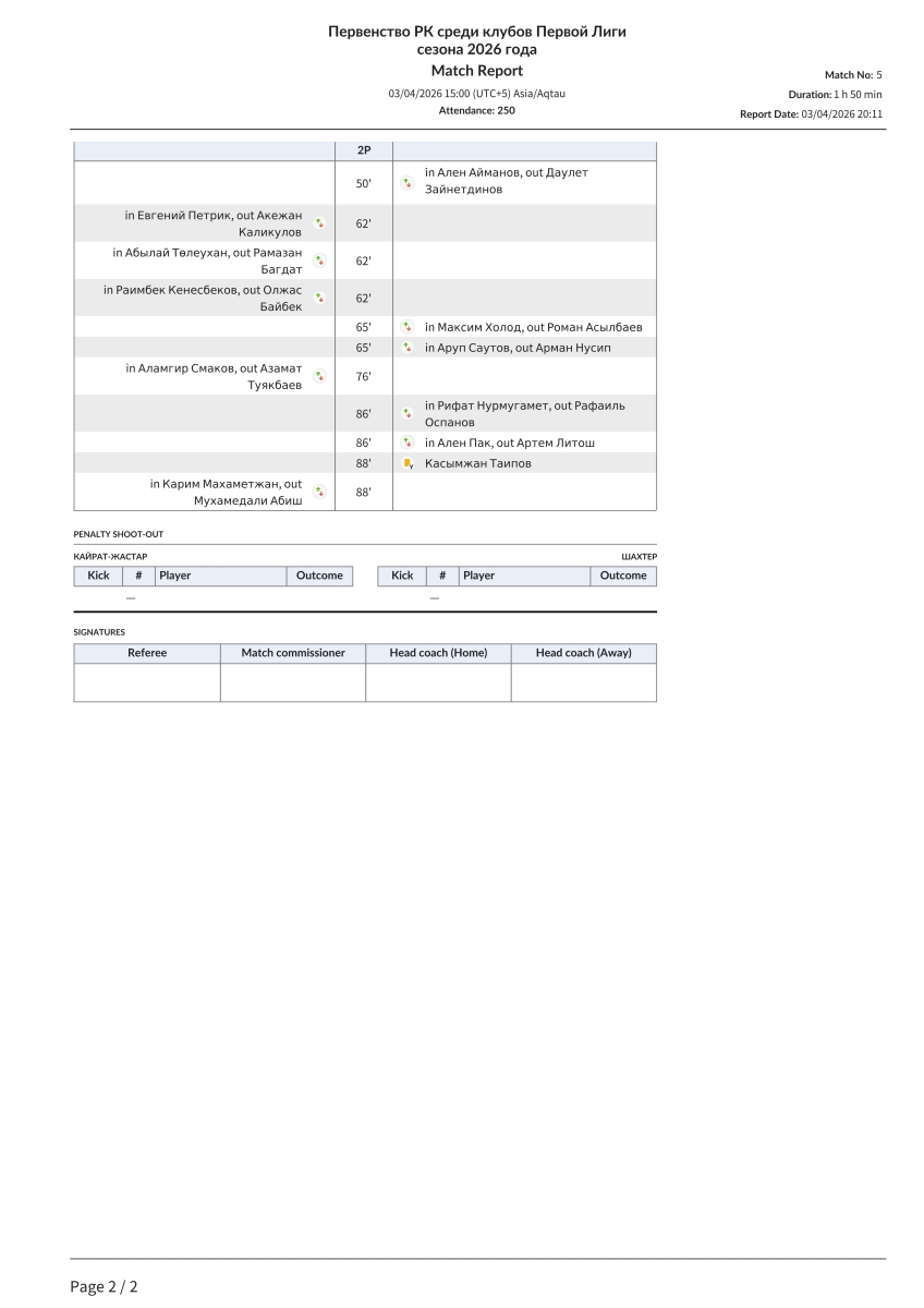 «Кайрат-Жастар» Алма-Ата - «Шахтёр» Караганда - 0:0