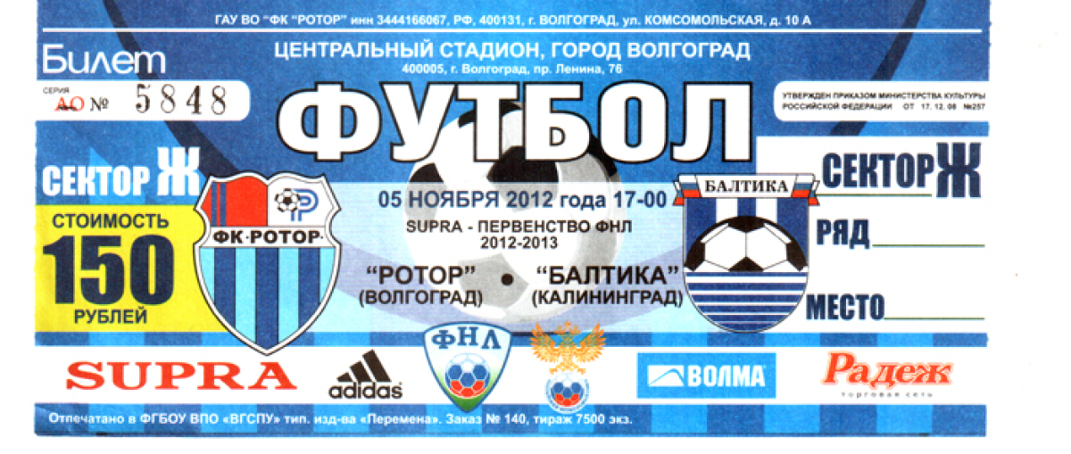 «Ротор» Волгоград - «Балтика» Калининград - 3:0