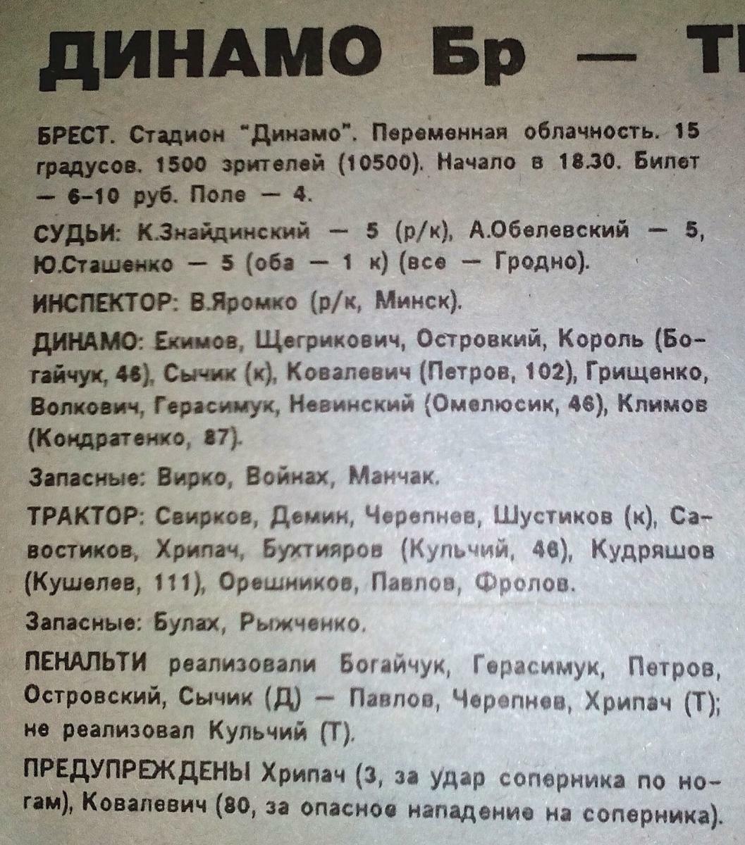 «Динамо» Брест - «Трактор» Бобруйск - 0:0