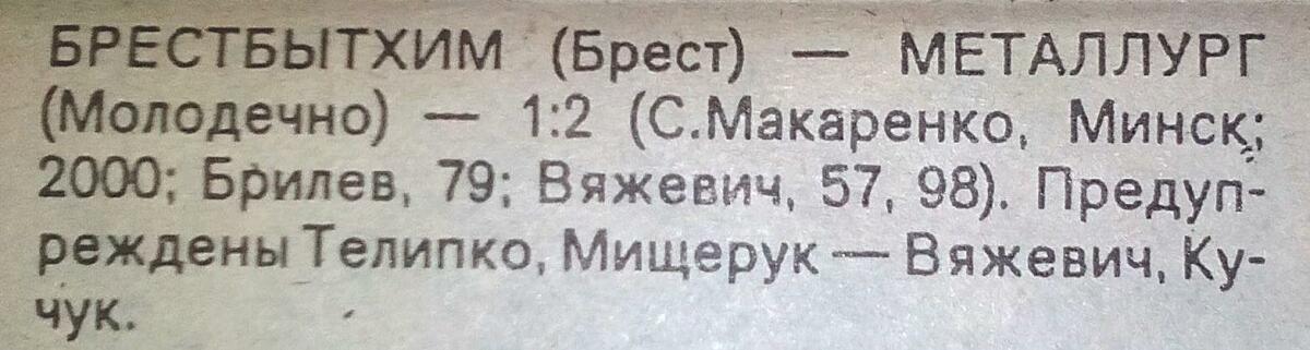 «Брестбытхим» Брест - «Металлург» Молодечно - 1:2