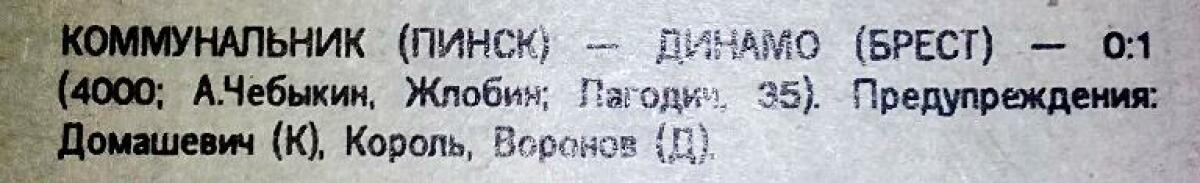 «Коммунальник» Пинск - «Динамо» Брест - 0:1